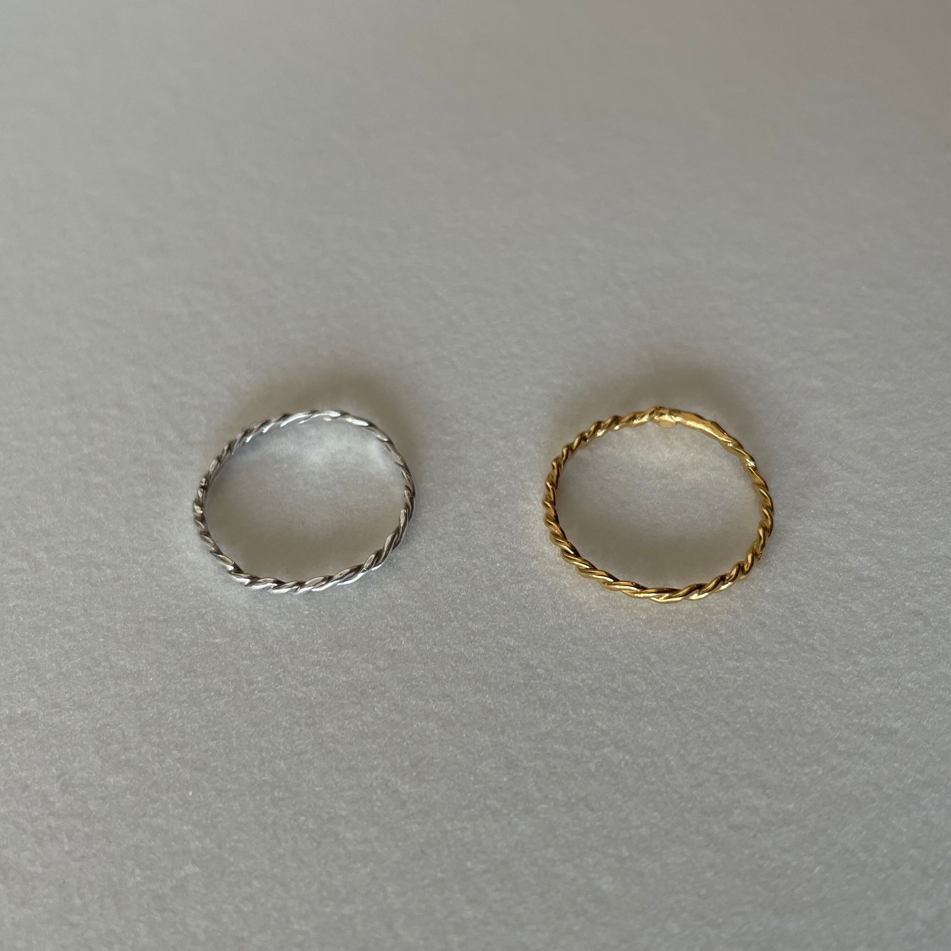 ひとつずつツイストして作る華奢なリングです。